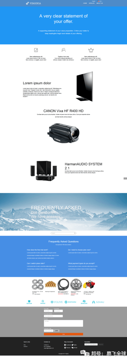 外贸网站在设计方面实际上是与一般国内的品牌网站所不同的,因为外贸网站的受众是海外用户,因此要考虑到中西方审美的差异,在设计上需更加倾向于西方人的审美和浏览习惯。首先,网页要简洁,页面中的文字和图片不要太多,这样页面会呈现更强的层次感,让访客的视线更容易集中在页面中主推的重要内容上面;其次,要注意图文混排少、文字描述紧凑、图片展示集中,根据访客在视觉上的心理和生理特点,确定各种视觉构成元素之间的视觉关系和浏览秩序;第三,页面中少放琐碎的修饰性元素,需要的地方尽量用颜色块作修饰,这样页面会更有整体感。