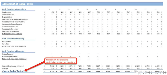 一旦您解决了运营,投资,财务中的所有流入(正面)和流出(负面)事件,您将获得当期新的现金余额。瞧!