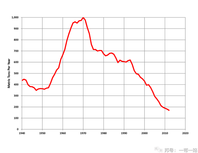 一个就是黄金开采量逐年下滑,矿业从贵金属黄金变成大宗商品-原材料--铀矿、煤矿、铁矿,这样收入锐减。