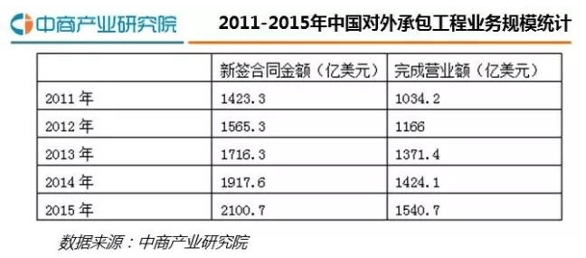 1. 对外工程承包高速增长,项目规模逐年扩大。2015年,我国对外承包工程完成营业额1540.7亿美元,同比增长8.2%,新签合同额2100.7亿美元,同比增长9.5%。项目立项也逐渐从单一项目向项目群发展,项目规模逐年增加。目前工程市场的状况就是多家公司组成联合,共同谋求发展。在当前形势下,每个公司要认清自己的优势并发展自己的长处,抓住机会,才能使自己在国际竞争的大舞台上立于不败之地。