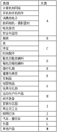 大类及类目划分如下: