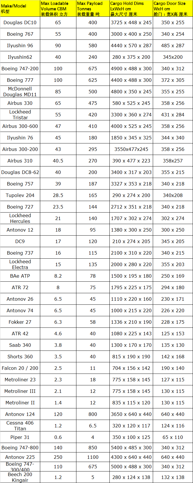 2. 空运货物的重量、体积(空运收费的主要参考值)