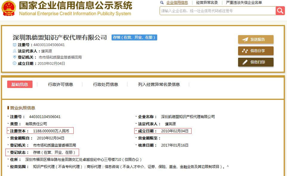 不法商标代理机构从网上下载企业的商标注册信息,给企业发函称原先的代办单位已经倒闭,如要重新办理则需再付手续费,利用企业的急切心理骗取钱财。国家企业信用信息公示系统查询公司状态:是否正常运营、营业执照、注册资金、注册时间、是否已注销等。查询网址: