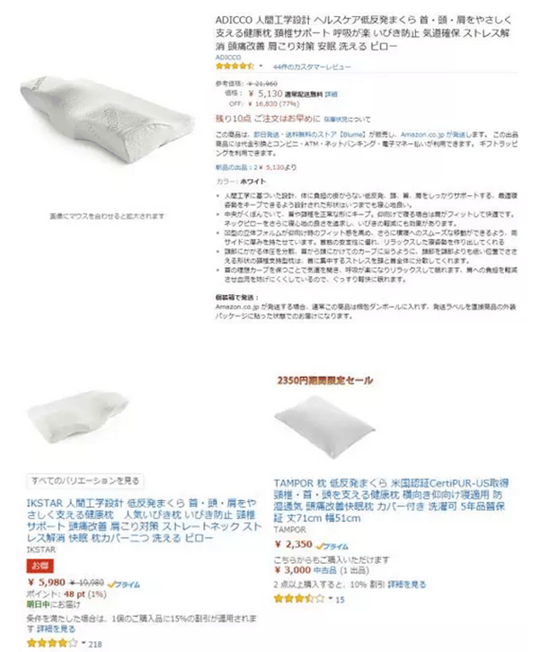 枕头、健康枕、抱枕,上周上升125%,参考ASIN:B01M6AC6Y4、B01LC2HFLG、B06Y5D34DL,日本人寝具需要更新了,都什么品类适合在梅雨季节使用呢?亚马逊招商经理列出了以下几个实例,并且寝具这个品类相较上周上升的幅度最大为125%。