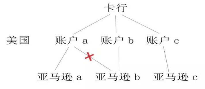 这是我自己做的关联概念图。如图中所示,千万不能用账户a去收亚马逊账户b, 这样会导致关联。