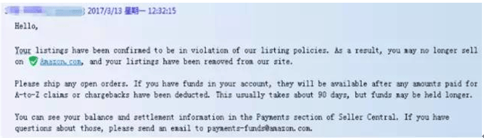 如果收到说辞含糊不清的邮件,如上邮件并没有说清楚具体是哪个Listing 违反了什么政策,有可能是亚马逊后台清理账号,机器处理程序出现“误杀”。