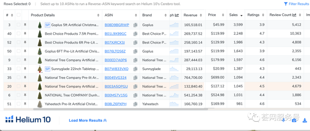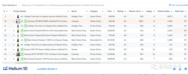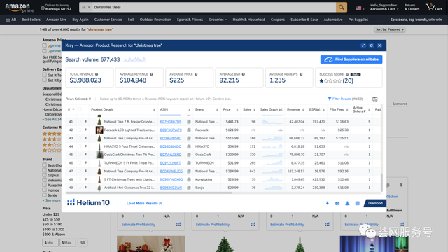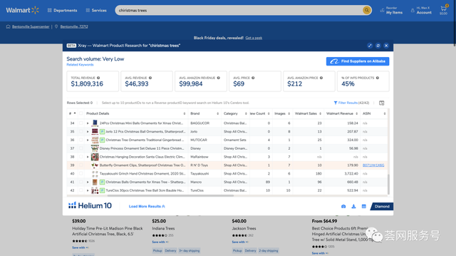 因为现在是节日季,所以我们以圣诞树(Christmas trees)作为关键词在沃尔玛搜索,我们用插件可以看到: