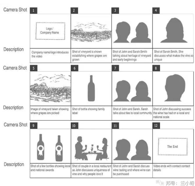 Tips:不同的视频细节会有所不同,但你的故事板至少要包括: