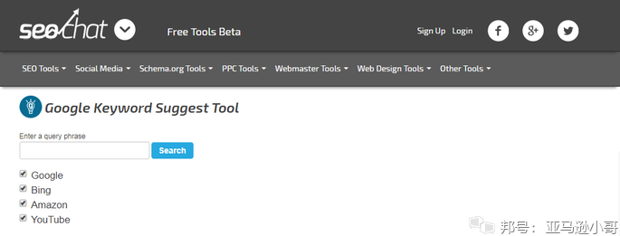 首先是这个,SEO CHAT关键词推荐工具,可以通过下面的页面进入推荐页面:
